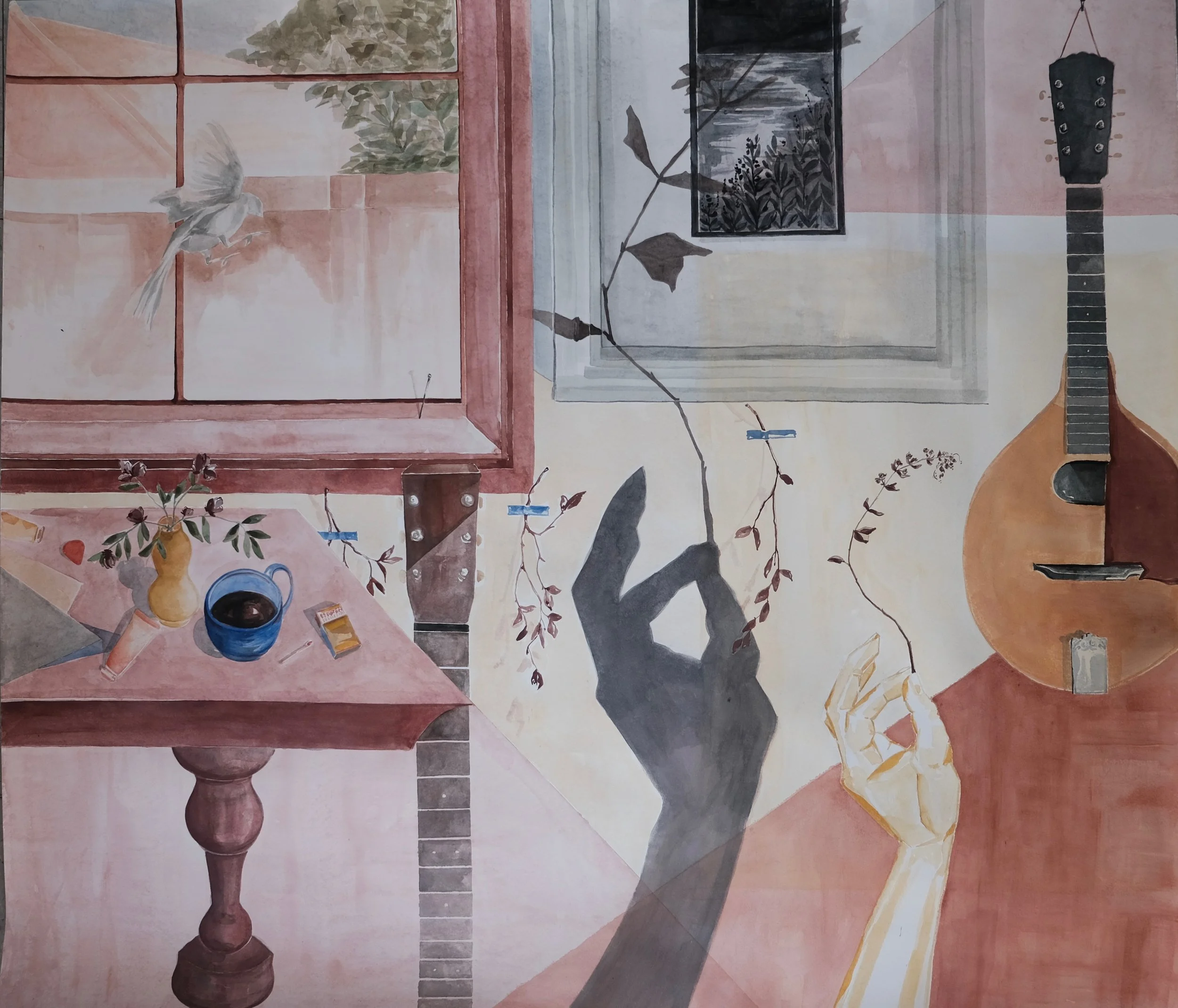 Summer in the Back Room, 12" x 16" gouache, watercolor, and ink on watercolor paper